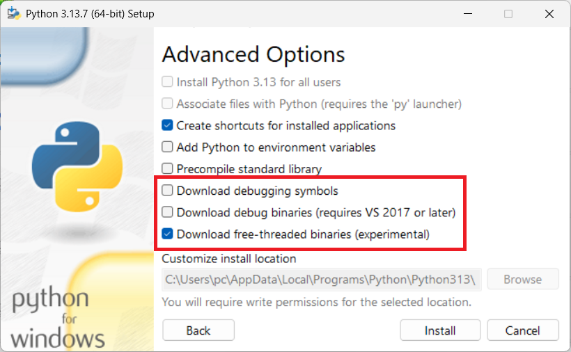 为了便于在命令行下管理多版本,python官方默认安装了py launcher,并且用管理员权限安装到全局目录;也可以在自定义安装选项中选择: